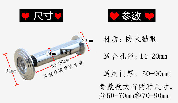 Chongsheng Fire Cat Eye Fire Door Special Clear Pipe Diameter 14mm Fire Protection Gate Cat Eye Security Door Mirror Door Mirror Door Lock