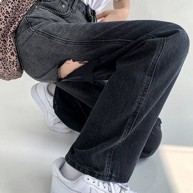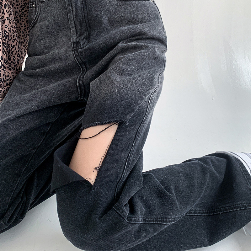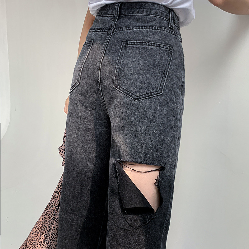 Ripped jeans women's straight loose high waist thin pants fat sister plus size women's summer clothing 2022 new trend