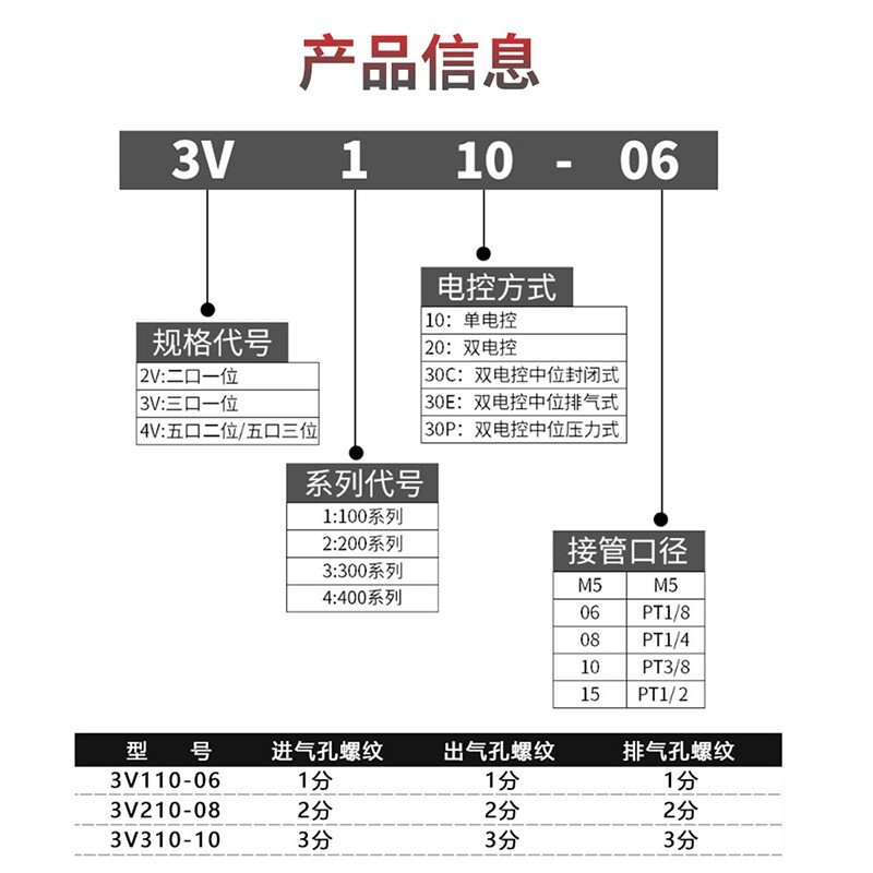 3V110-06 AC220V (normally closed) 3V110-06 DC24V with light (normally closed) 3V210-08 DC24V (normally closed)