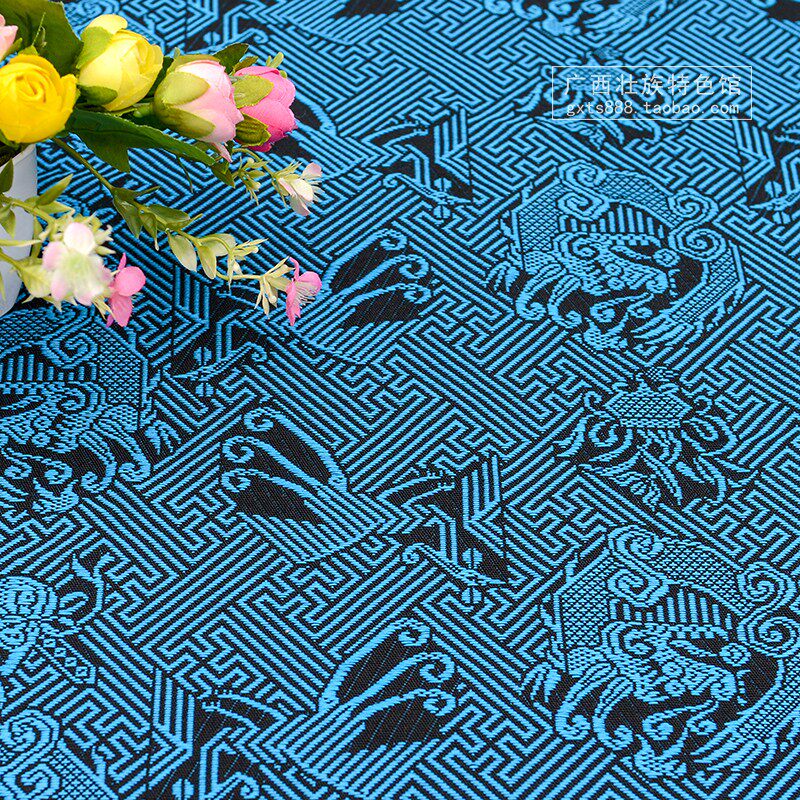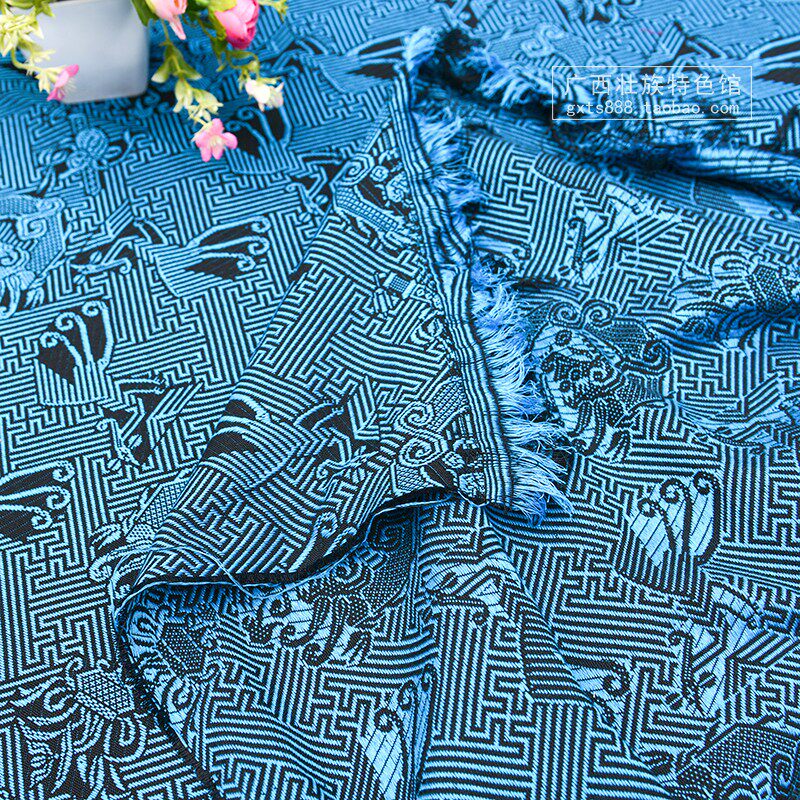 Guangxi Zhuang traditional totem Zhuang brocade pattern Dragon phoenix pattern Black and blue decorative fabric Fabric clothing pattern