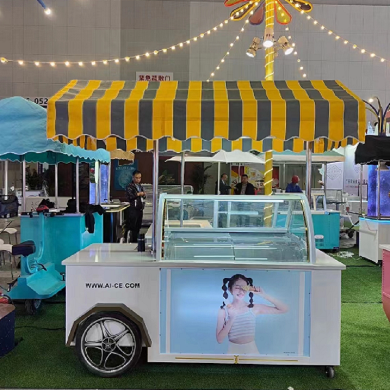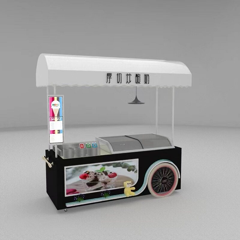 Flower Truck Custom Ice Cream Display Cabinet Air-cooled Frost-free Hand Ice Bar Exhibition Cabinet Fried Yogurt Direct Current Electric Vending Car