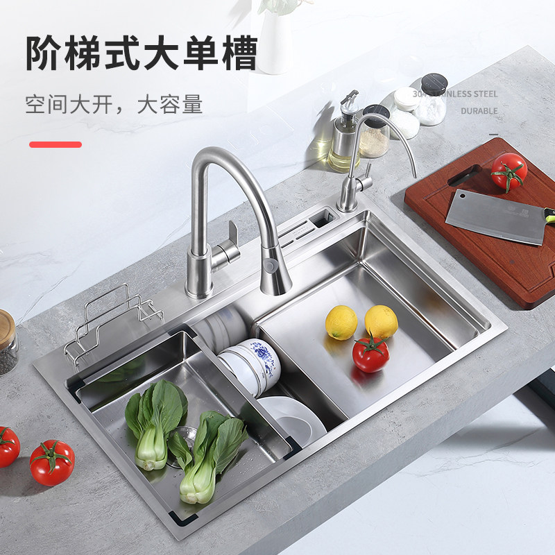 Stepped sink Kitchen Wash Basin Big Single Sink Manual Thickening 304 stainless steel High and low Steps dishwashing pool basin
