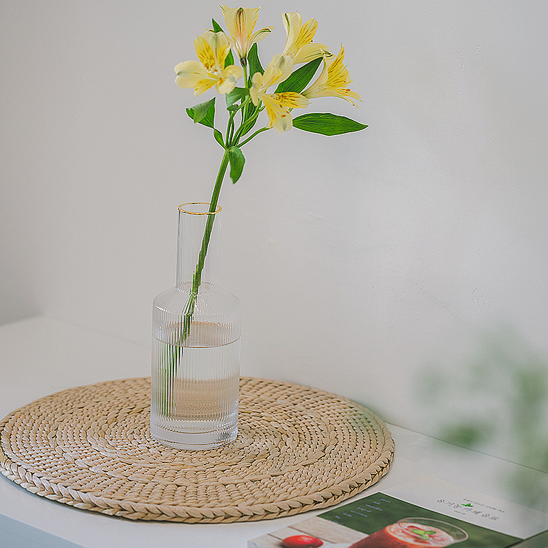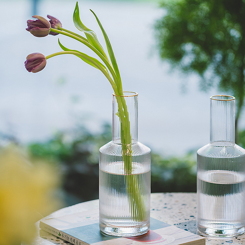 Net red light luxury Nordic creative small caliber sketching gold transparent glass vase swinging parlor floral flower floral water raising flowers-Taobao