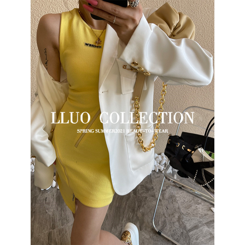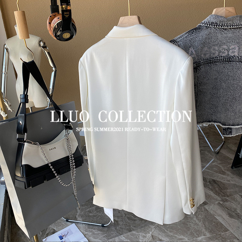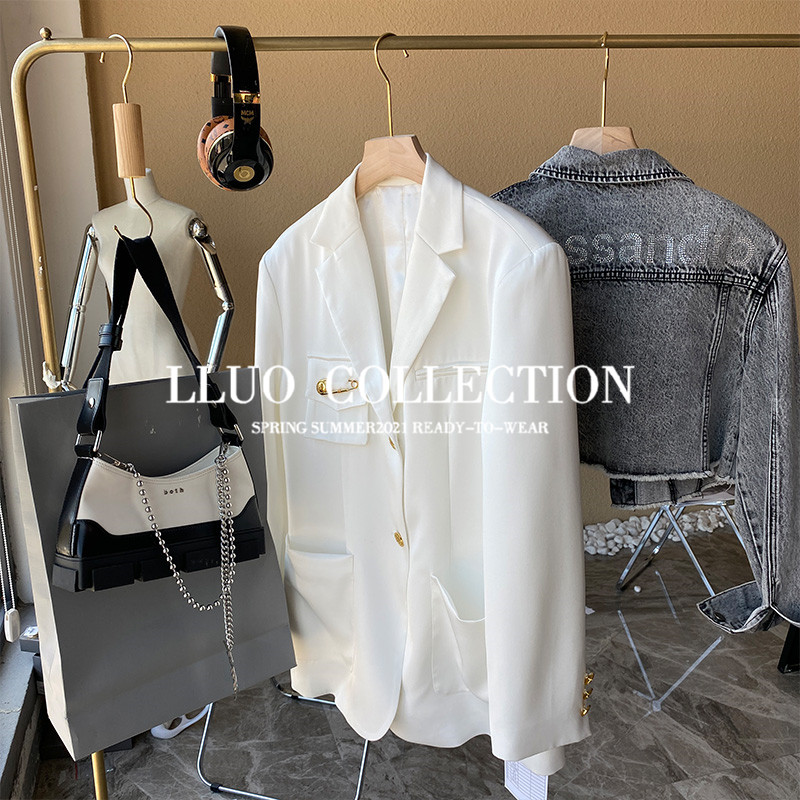 Clearance pick-up leak Wang fried texture custom 100 triacetate white suit jacket female Korean version loose top
