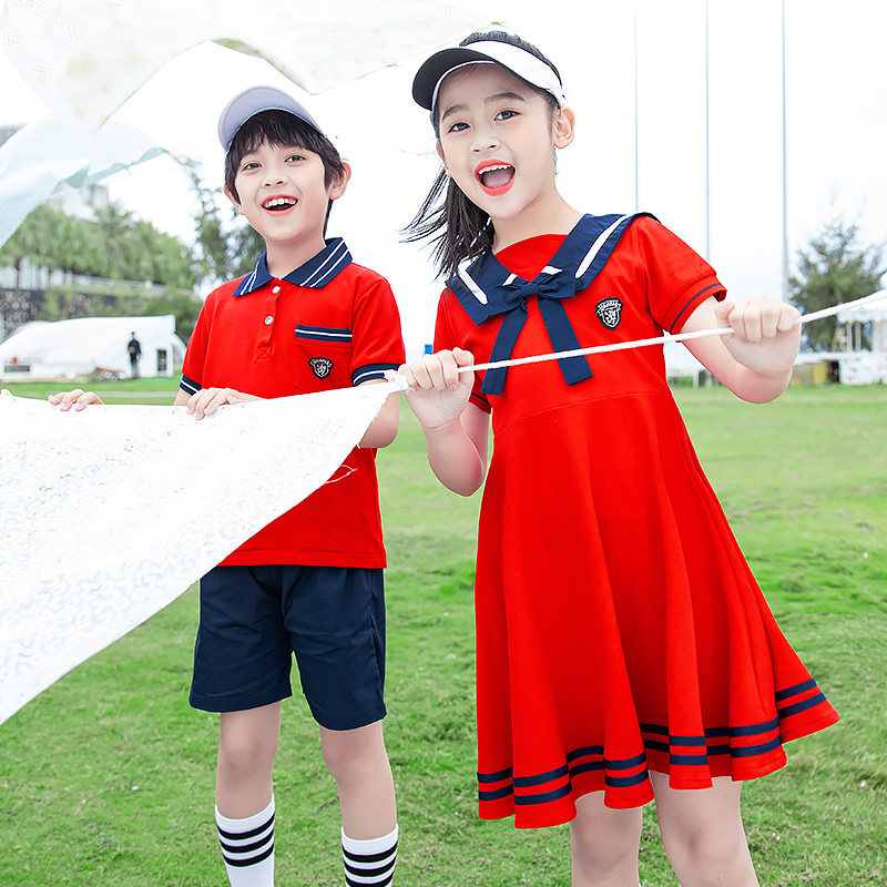 Kindergarten uniforms summer casual college style children's class clothes striped primary school uniforms summer sports suits