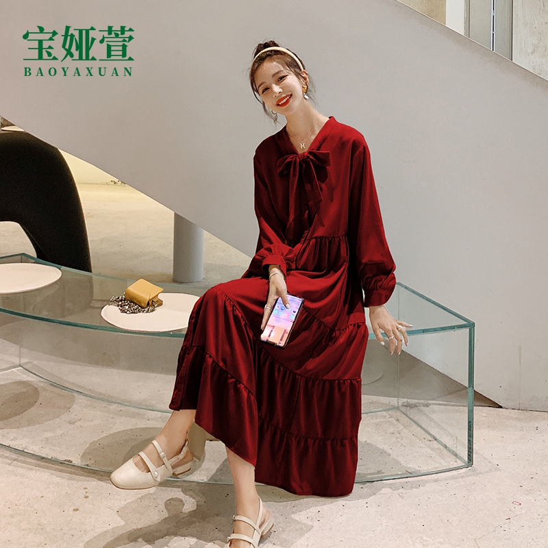 Maternity wear long sleeve dress early autumn new large size top fashion trendy mother long skirt autumn 2022 new