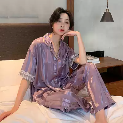 VIRRI CIAGA JU temperament ins style pajamas women's summer silk lace short-sleeved home service suit