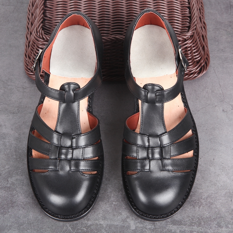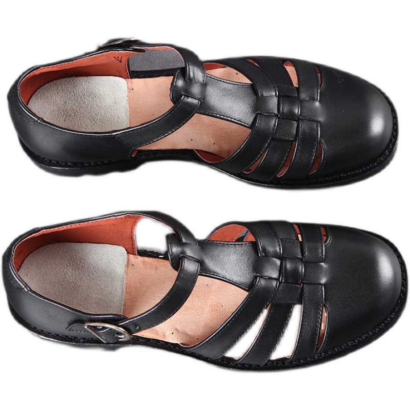 3516 factory middle-aged and elderly people plus fat leather handmade casual sandals retro round head 65 style old three leather sandals