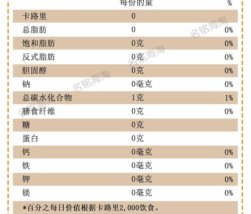 Ingredients list: