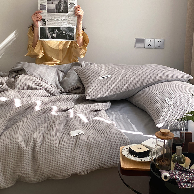 Nordic wind upscale Huafg beds 4 pieces of pure cotton full cotton 100 quilt cover washed cotton bed linen bed product kit 4-Taobao