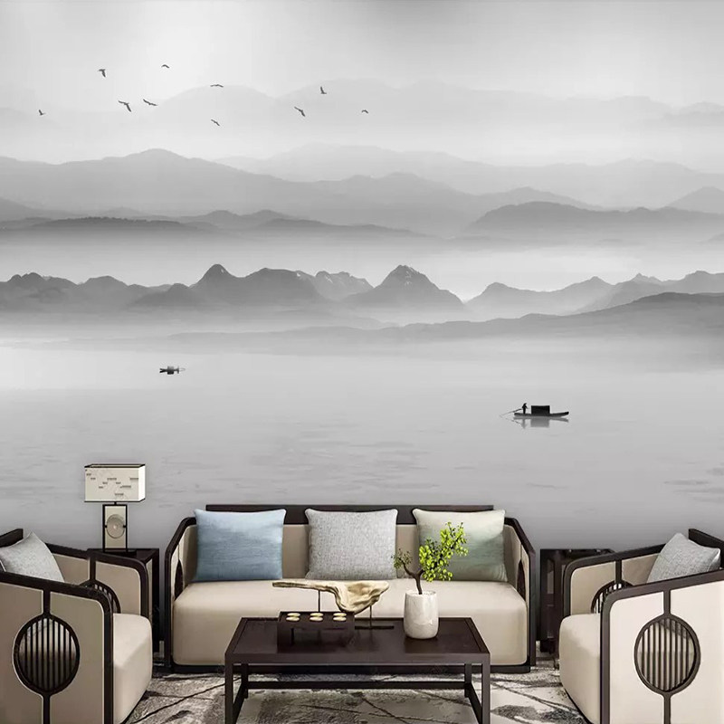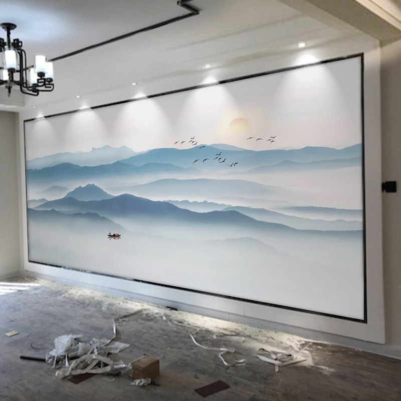 New Chinese Bamboo Wood Fiber Board TV Background Wall Modern Minima Water Ink Landscape Painting Integrated Board Home Video Wall