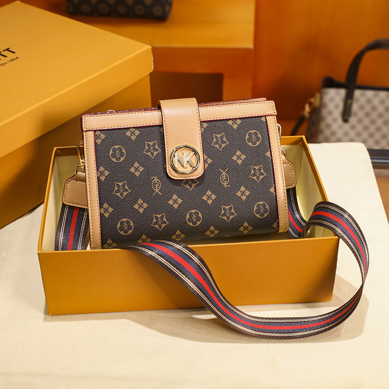 French DUDK women's bag leather trend fashion light luxury one-shoulder messenger bag elegant retro print small square bag