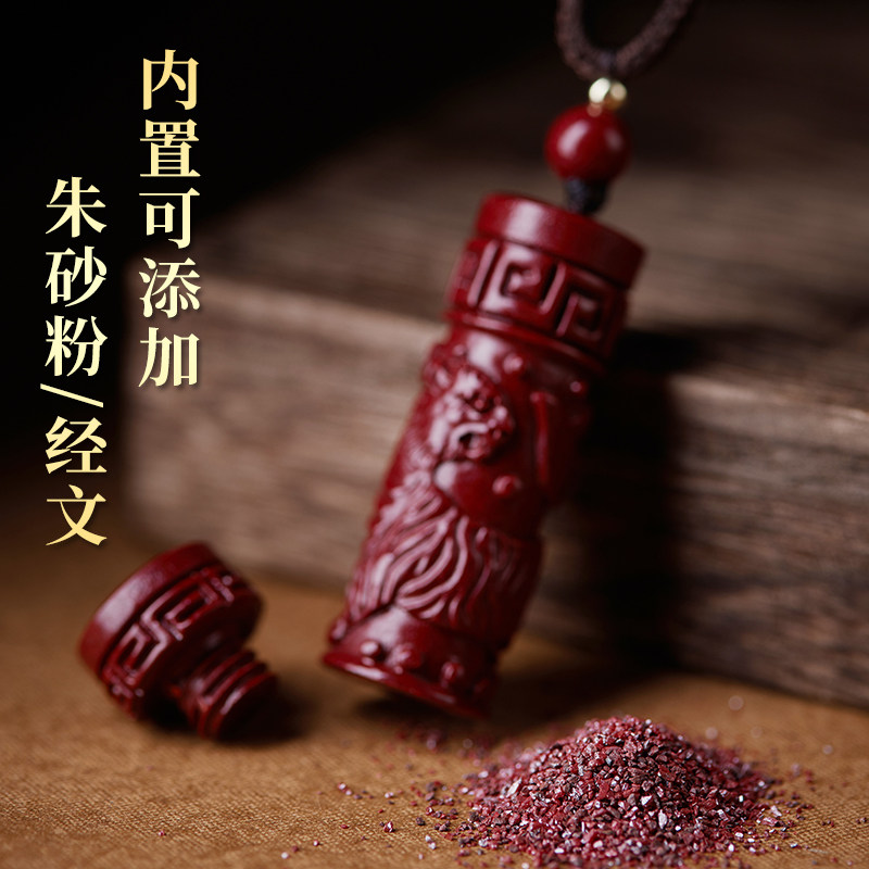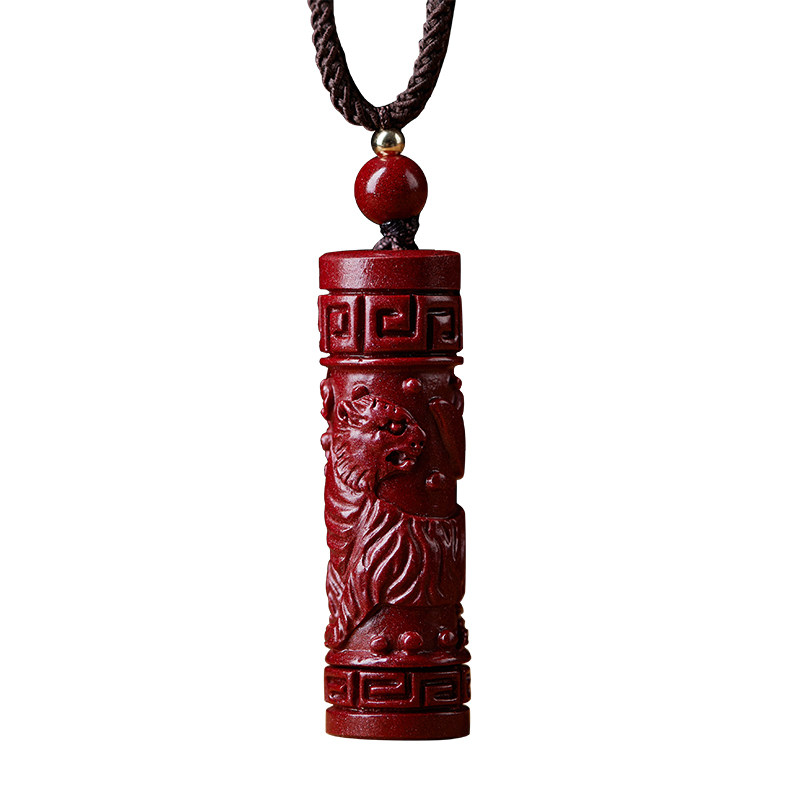 Cinnabar cylindrical zodiac pendant