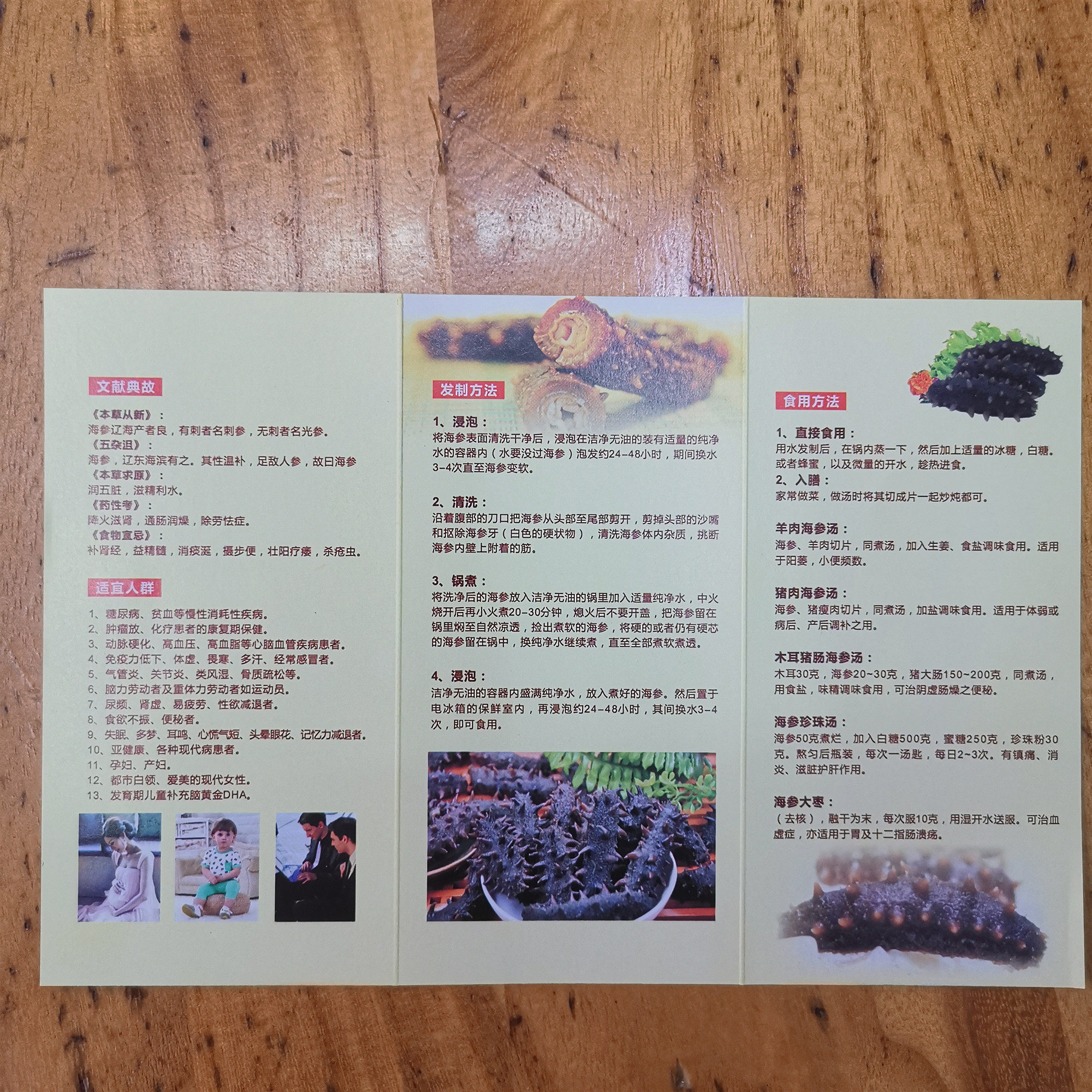 A brochure of sea cucumber brochure instructions folded 3 fold 14*7cm one copy