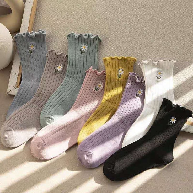 Fungus lace socks women's middle tube socks ins tide cute Korean Japanese girls flowers spring and autumn summer bubble socks