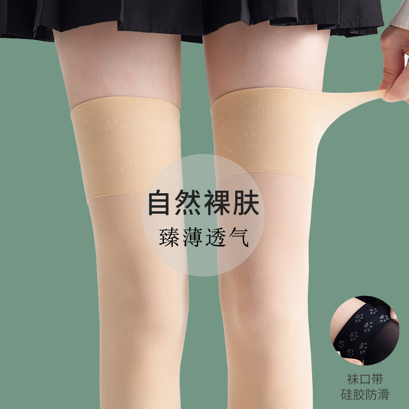 Over-knee socks women's stockings spring and autumn thigh half cut stockings anti-slip autumn and winter plus velvet high socks thin flesh color
