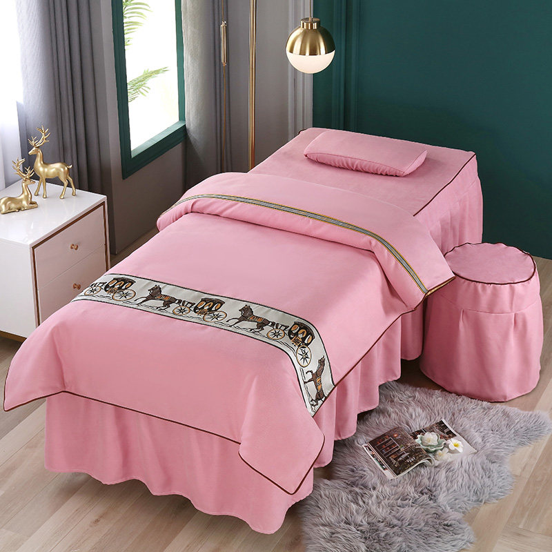 Beauty Bed Cover Four Pieces Upscale Lavish Beauty Salon Massage Physiotherapy All Cotton Pure Color Bed Cover Thickening Brief