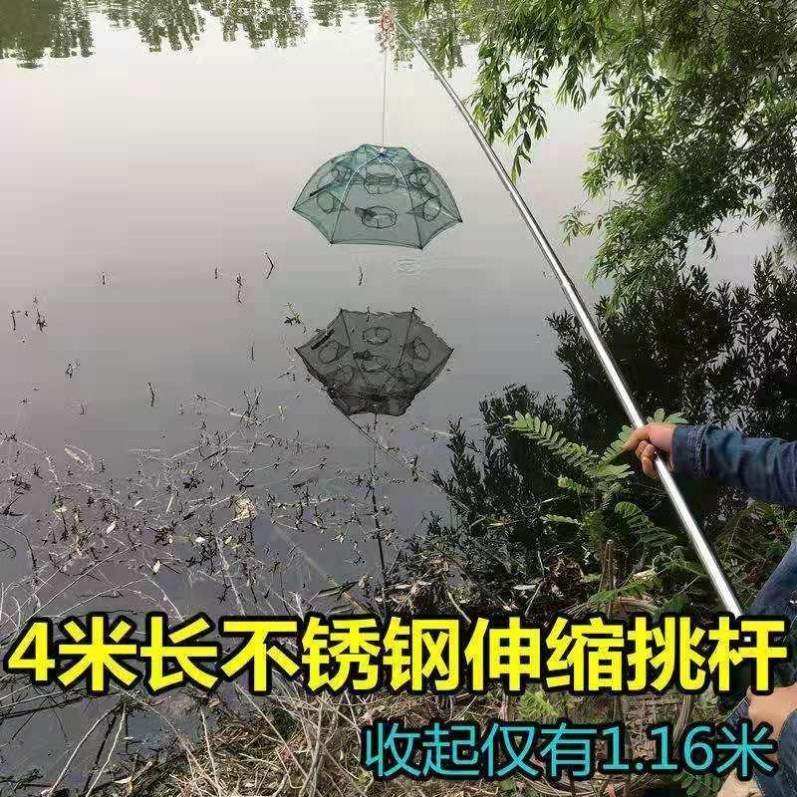 Cage rod telescopic fishing net rod multi-functional stainless steel fish cage shrimp cage cage rod hook super hard retractable cage rod
