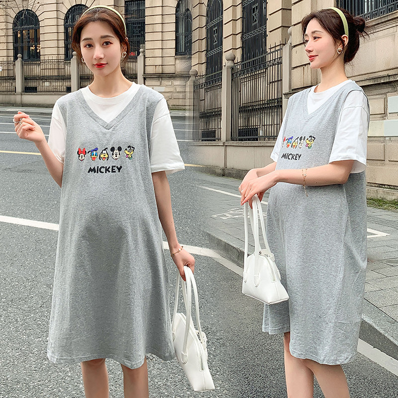 Maternity dress summer late pregnancy summer dress maternity dress summer suit fake two long skirts 2022 new trend