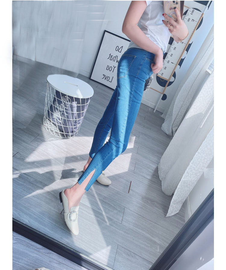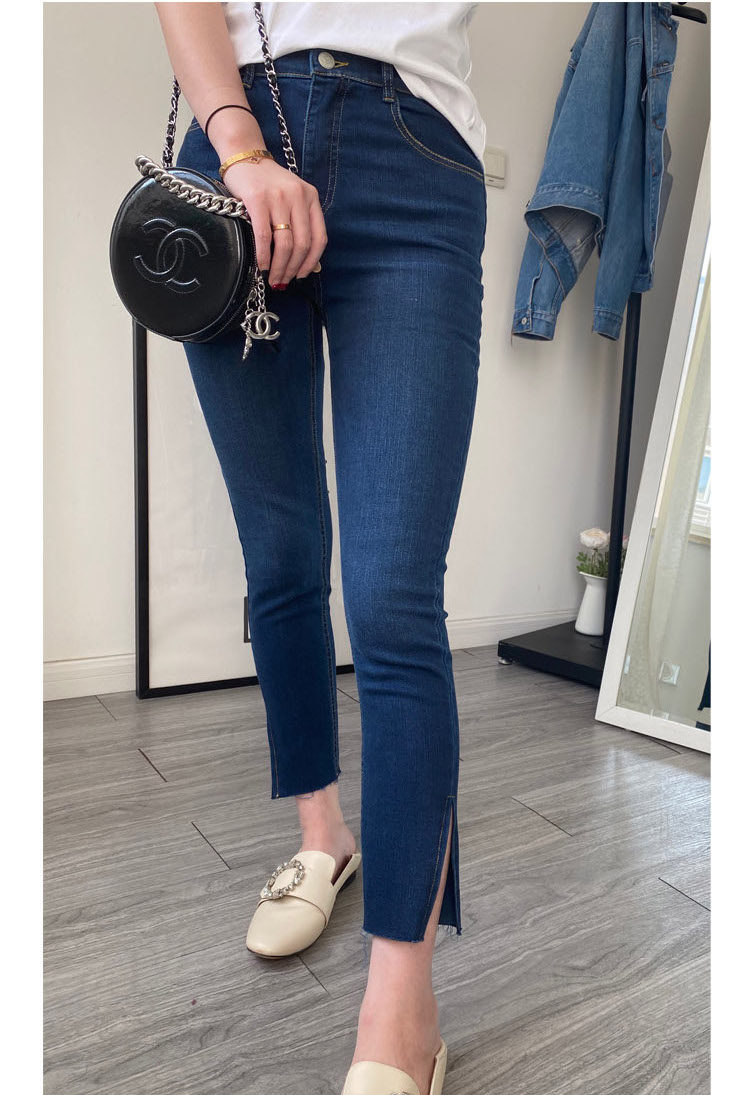 Outline a good figure 2 spring and autumn seasons slim fit, buttocks, slim trousers, split Italian high waist cotton elastic jeans