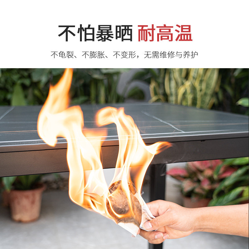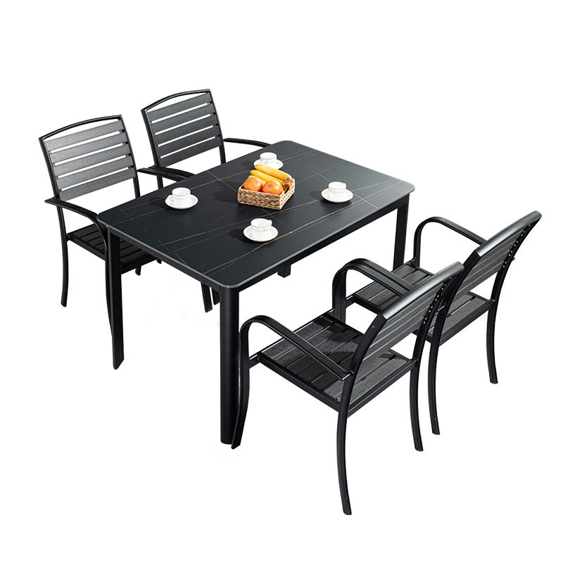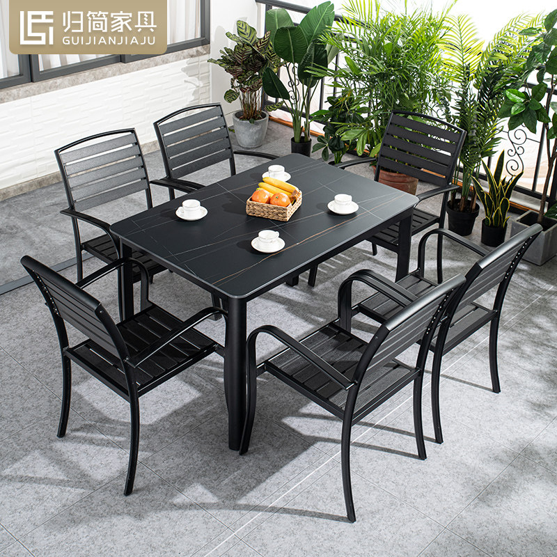 Simplified outdoor leisure tables and chairs Italian minimalist rock board dining table and chair combination simple courtyard villa plastic wood chair table