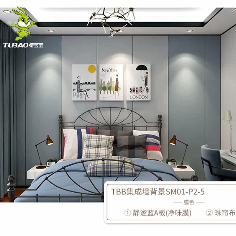 Bunny integrated background wall panel new Chinese style light luxury TV bedroom background wall wood veneer solid board package installation