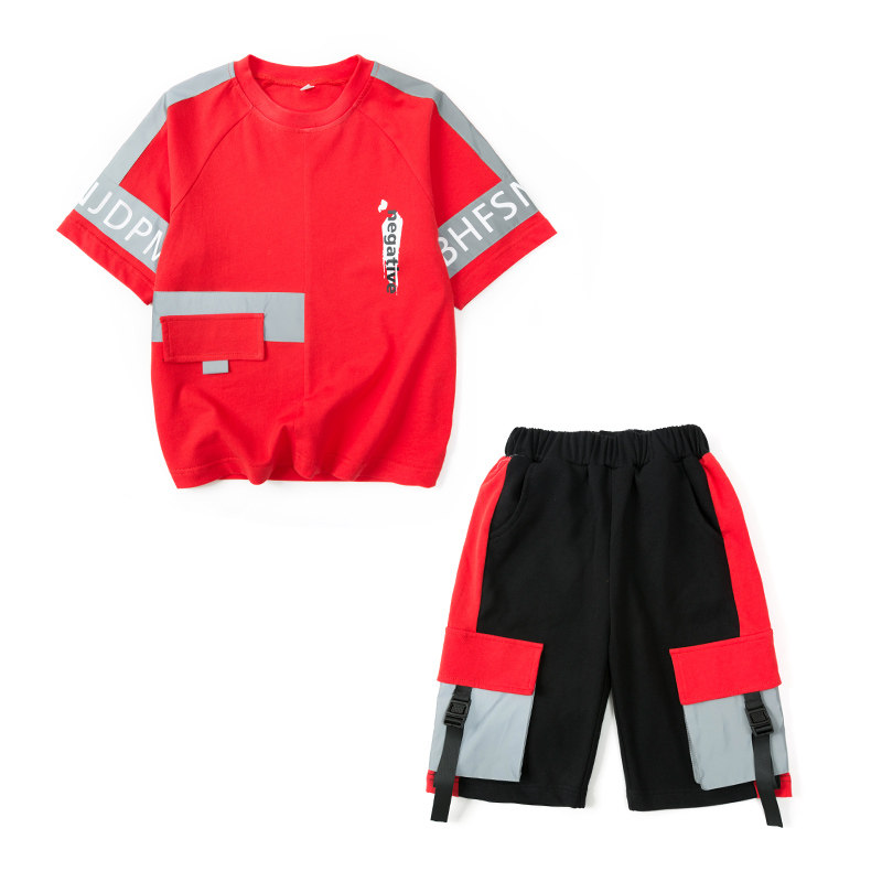 Boys' summer suits 2021 new middle-aged children's short-sleeved loose and casual two-piece net red tide clothes Korean version of the Western style