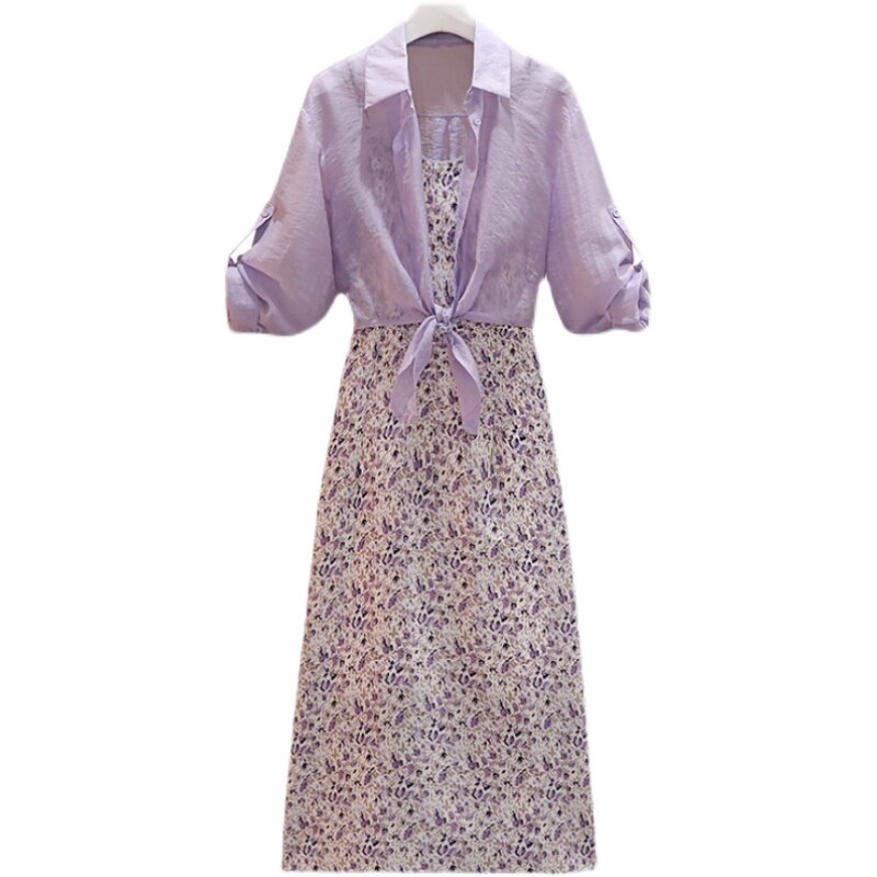 Sunscreen shirt Floral suspender Nursing skirt Western style two-piece summer out fashion nursing large size women's hot mom