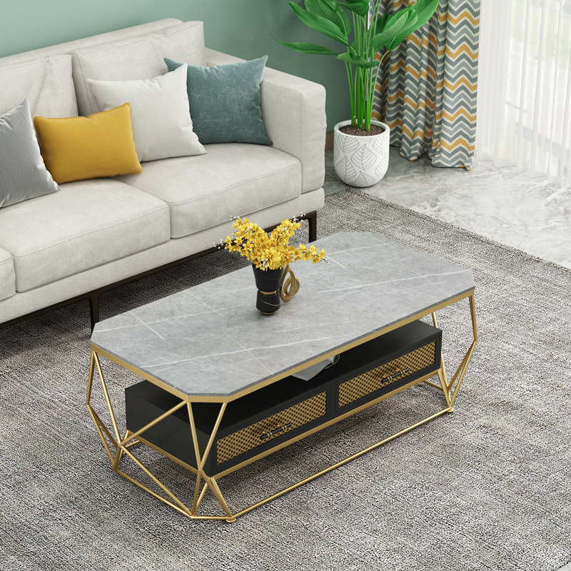 Light Extravagant Modern Tea Table Small Family Style Living Room Minima Nordic Rectangular Home Table Rock Plate Balcony Edge A Few Marble