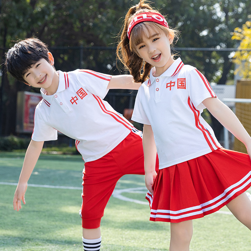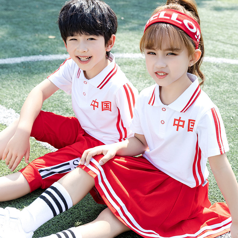 Kindergarten suit summer cotton short sleeve red Chinese sportswear clothing children's clothing suit 61 primary school uniform