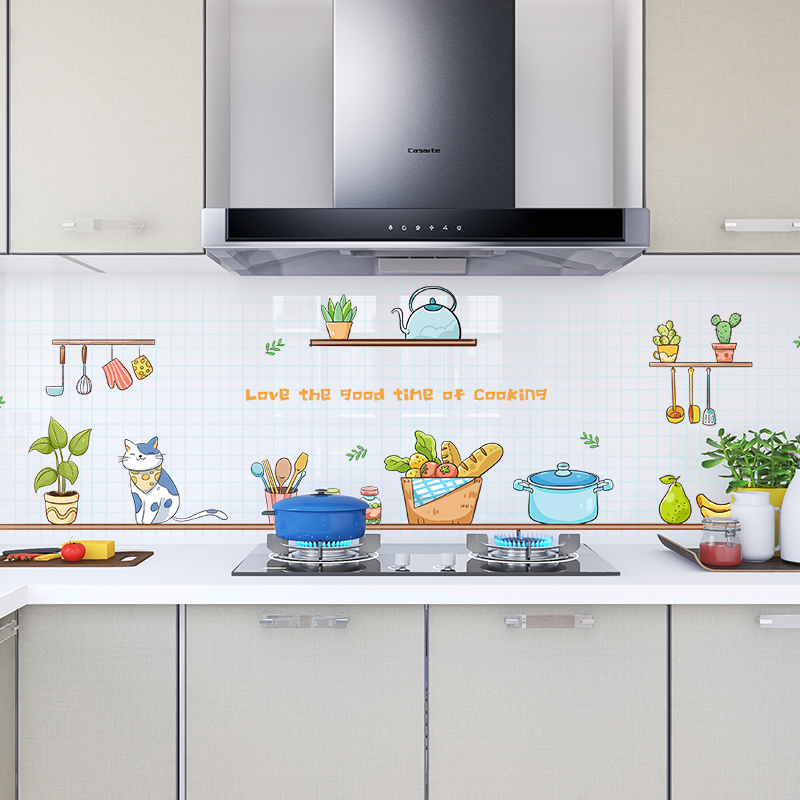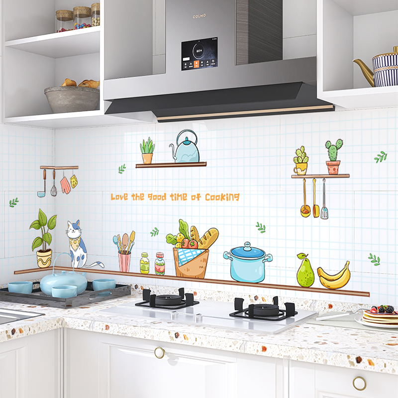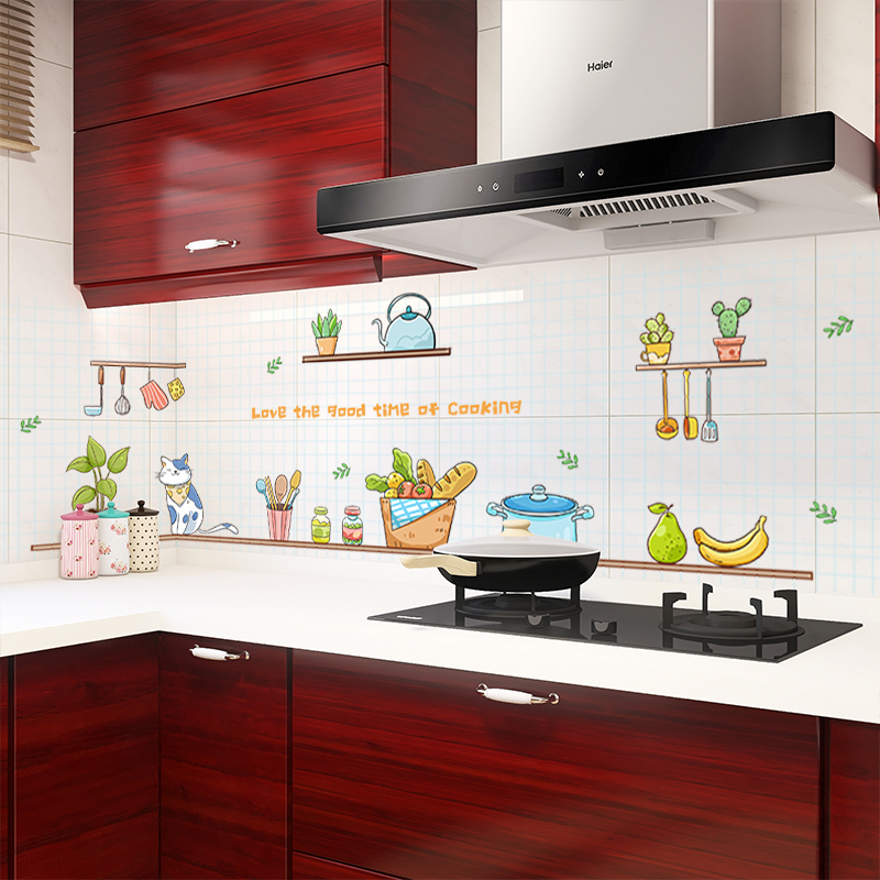 Home kitchen transparent anti-fume wallpaper high temperature fireproof thickened wall stickers stove tile waterproof self-adhesive stickers