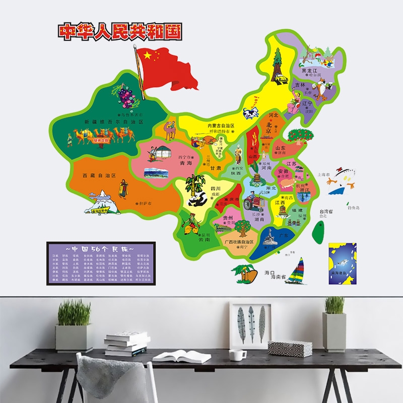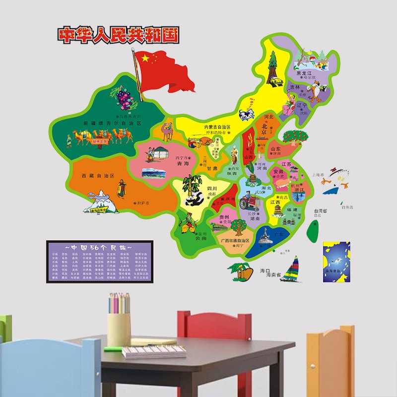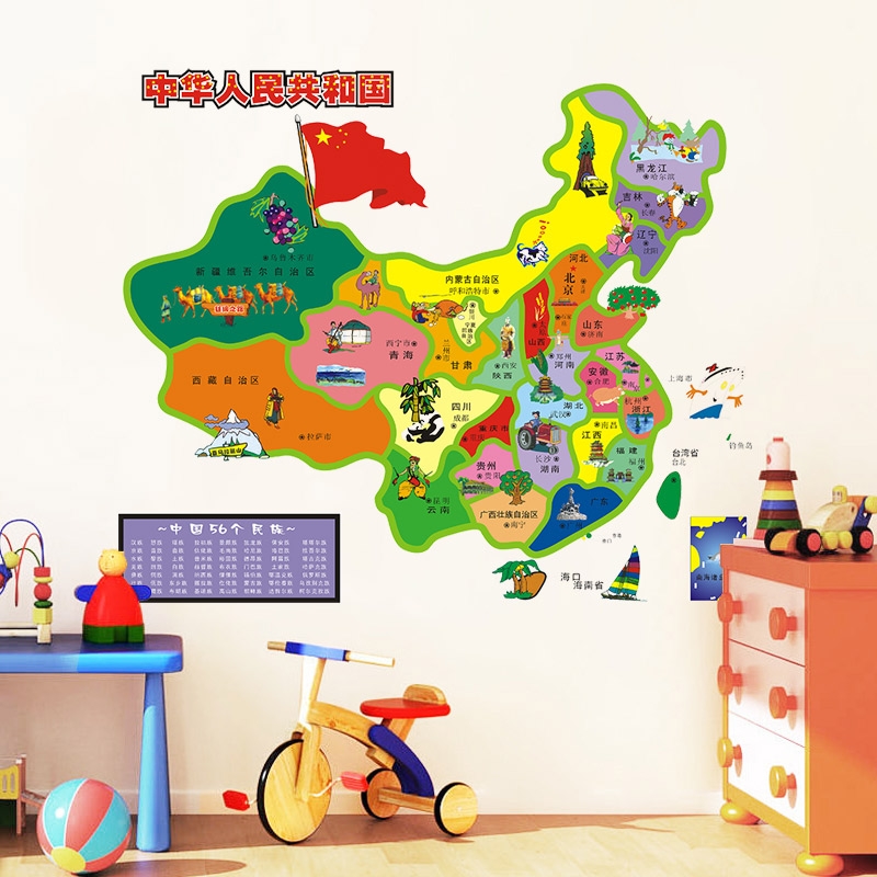 Cartoon Walls Maps Stickup Kindergarten Wallpaper Decorated Children's Room Wallpaper Self-paste Paper