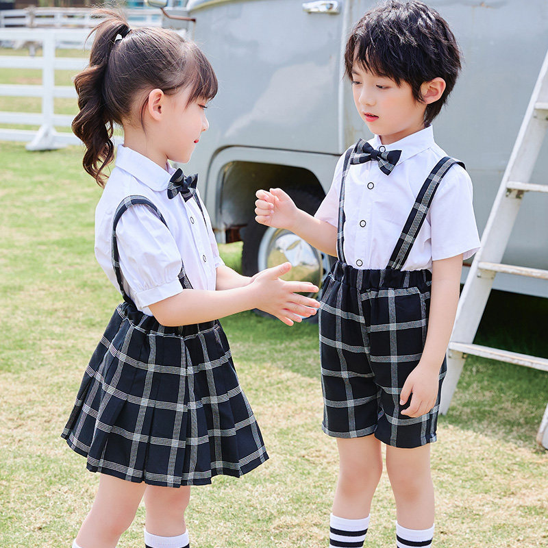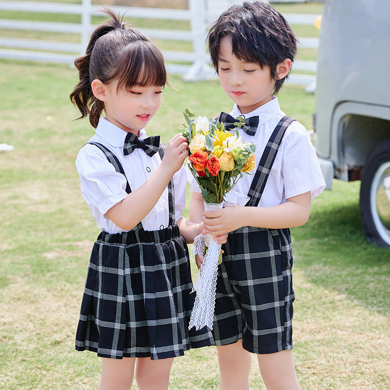 Elementary school students summer clothes British style school uniform kindergarten clothes children's summer graduation photo class clothes performance baby bag suit