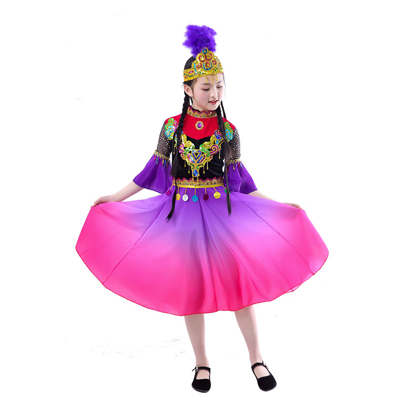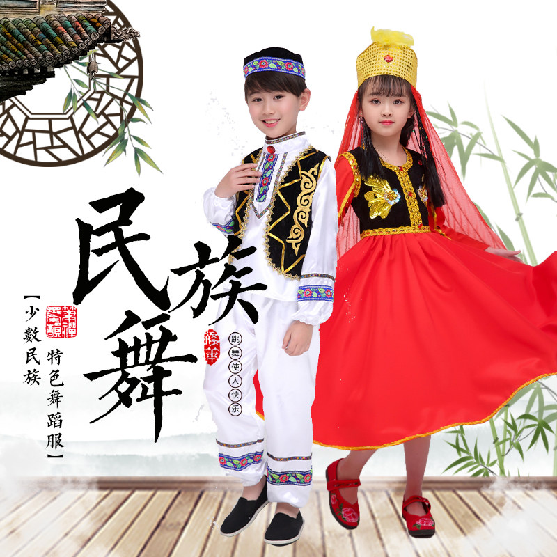 Children and adults 56 ethnic minorities performing dance costumes Tajik Kazakh Xinjiang Uyghur