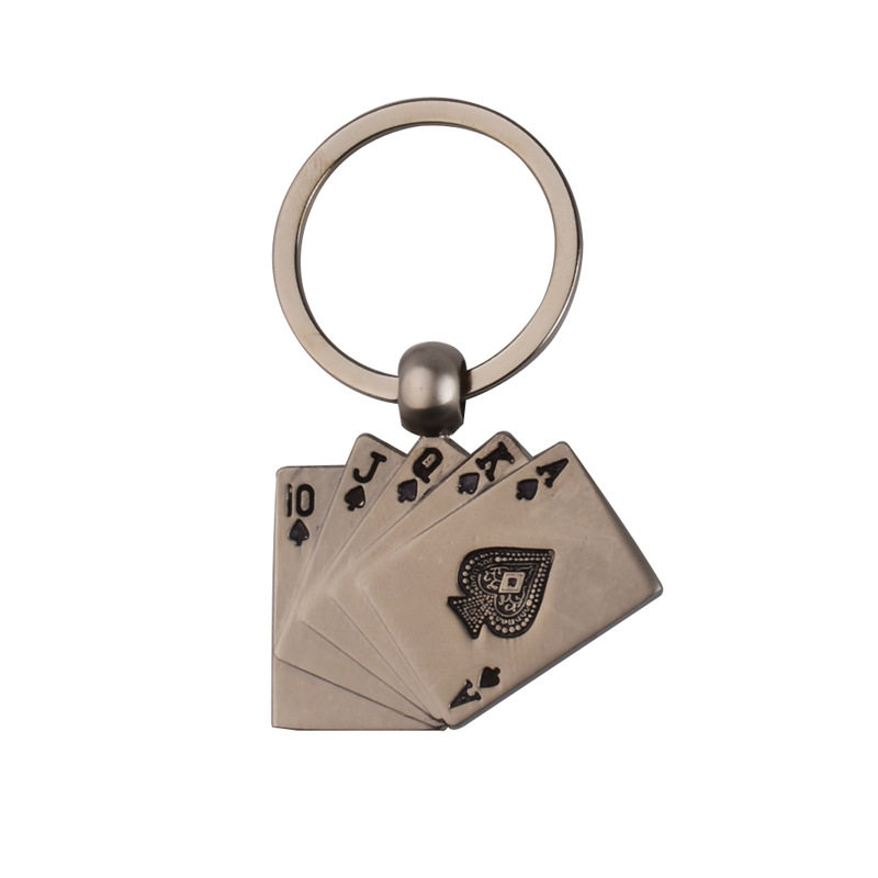 Same Flower Cis-key Chain Good Luck Pendant Playing Cards Hanging Accessories Gift Stainless Steel Alloy Metal Car Key Buckle