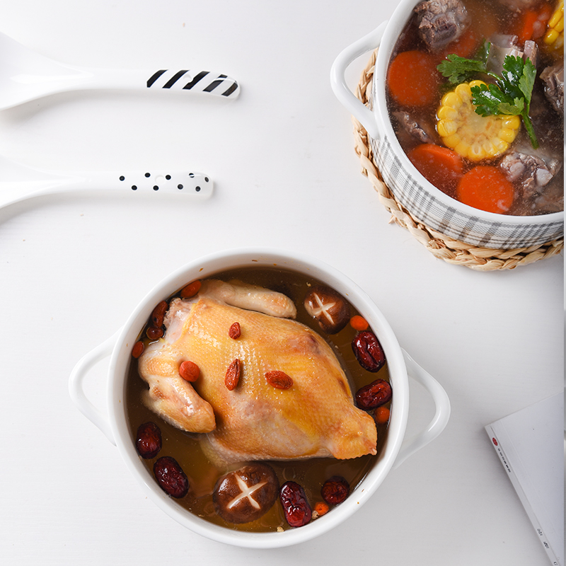 Wave Dot-double ear soup bowl striped-double ear soup bowl cloth-double ear soup bowl wave point-double ear soup bowl large ceramic spoon stripe-double ear soup bowl big ceramic spoon cloth-double ear soup bowl big pottery