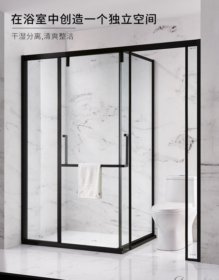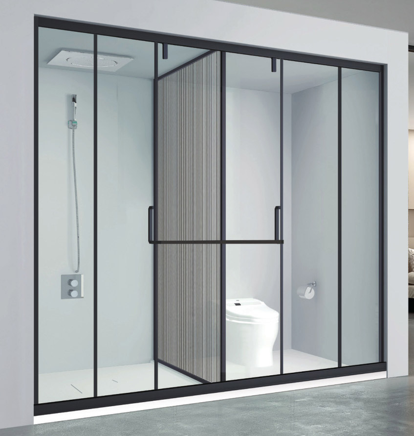 T-shaped shower room partition Powder room Dry and wet separation bathroom overall household glass door bathroom Stainless steel