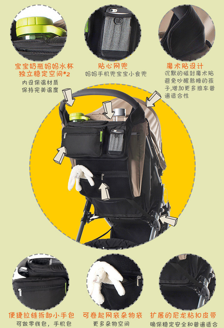 Baby stroller containing hanging bag baby Che large capacity black storage bag Folding and versatile new hanging bag