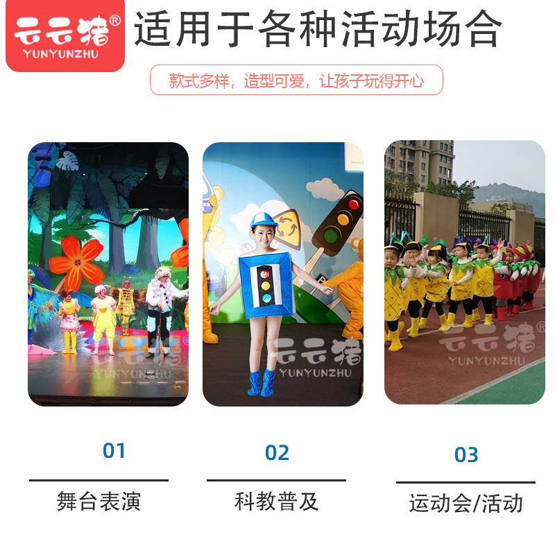 Children's traffic knowledge role costume stage red light stop green light line performance traffic sign picture book drama performance