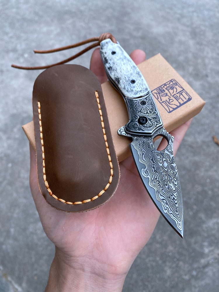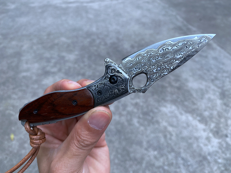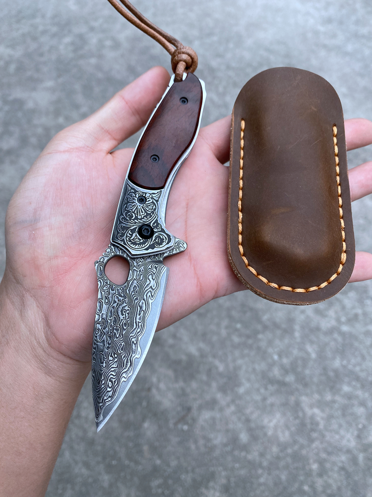 Minimalist black avocado VG10 Damascus steel knife outdoor anti-body folding knife sharp type camping portable fruit knife-Taobao