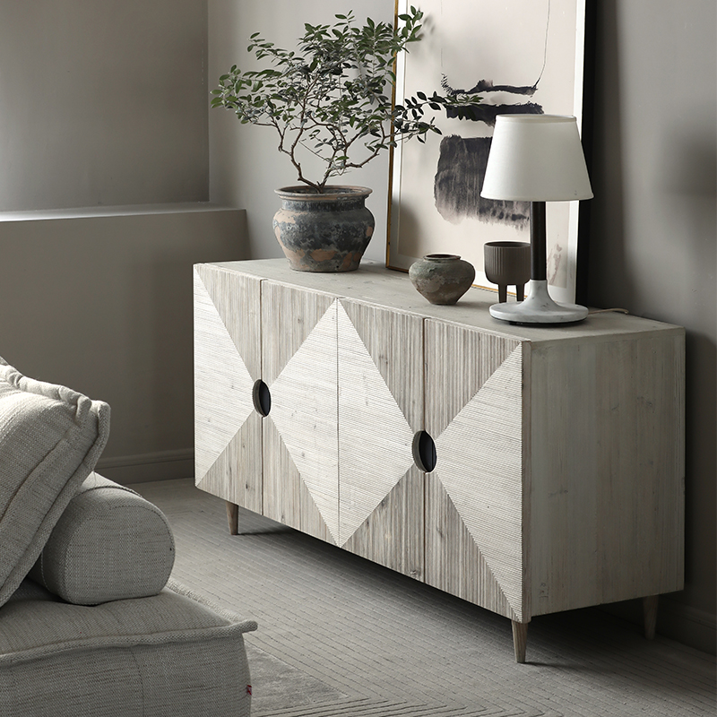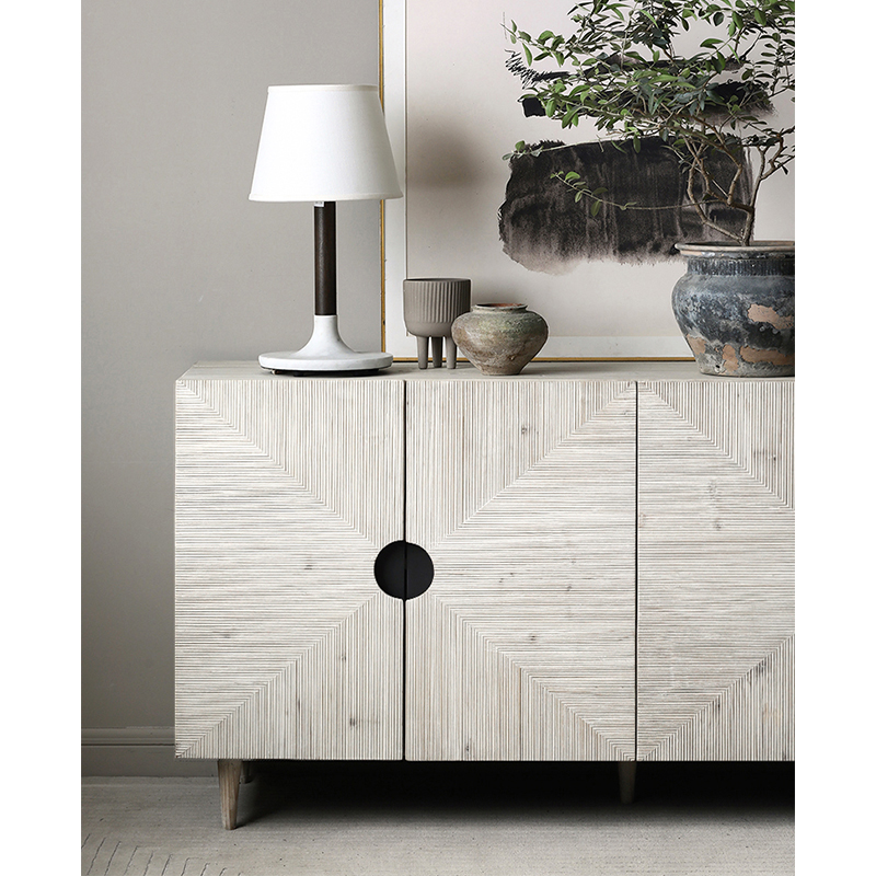 Nordic Expression Ebur Dining Cabinet SILENT WIND NATURAL LOG SOLID WOOD HANDMADE ENGRAVING SCULPTURES XUAN GUAN CABINET 4 DOORS