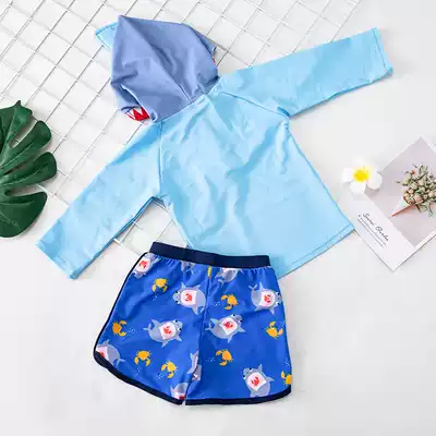 Korean hooded children's swimsuit baby two-piece sunscreen quick-drying small, middle and big boy toddler hot spring swimming trunks