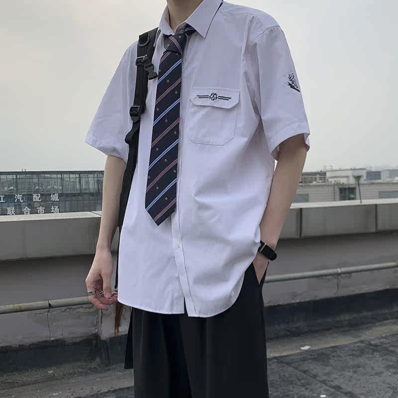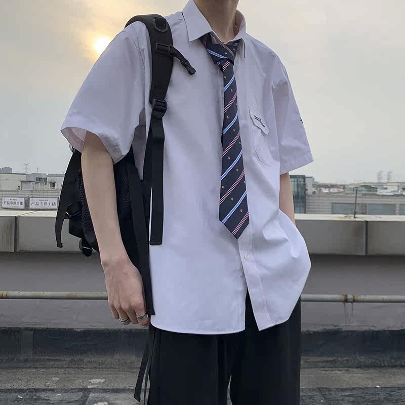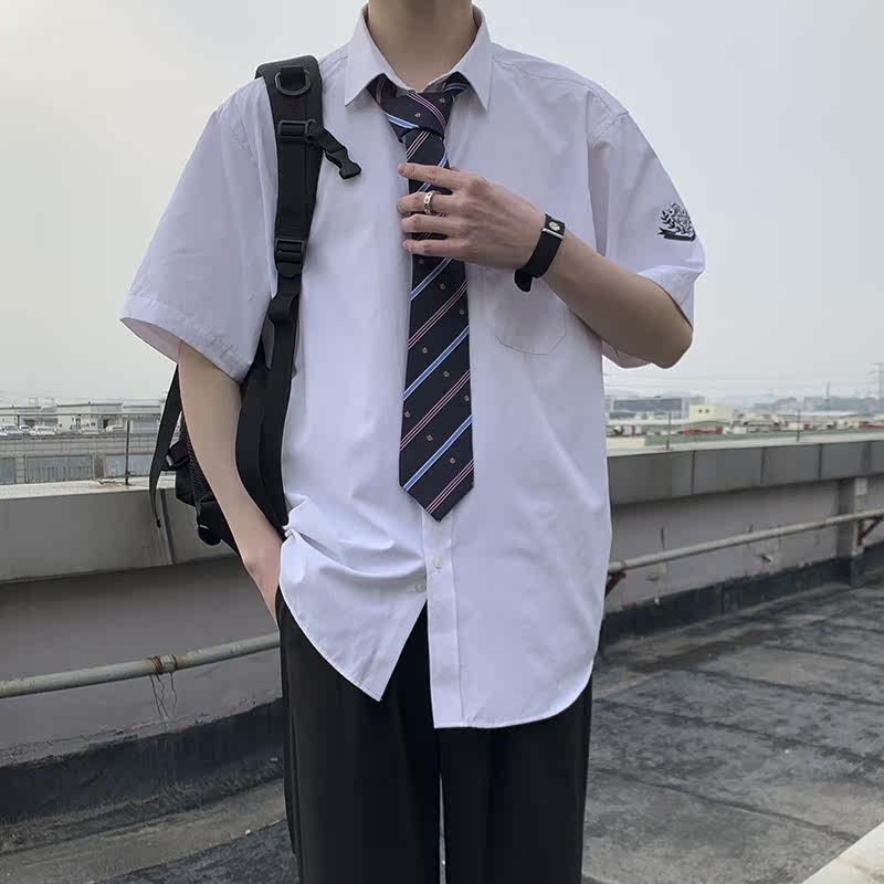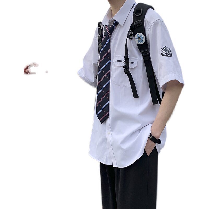 Fujiwara Wild Sichuan Dk Uniform Men Jk Shirt Base Short Sleeve Banfu School Students Dress College Wind High School White Lining Clothes