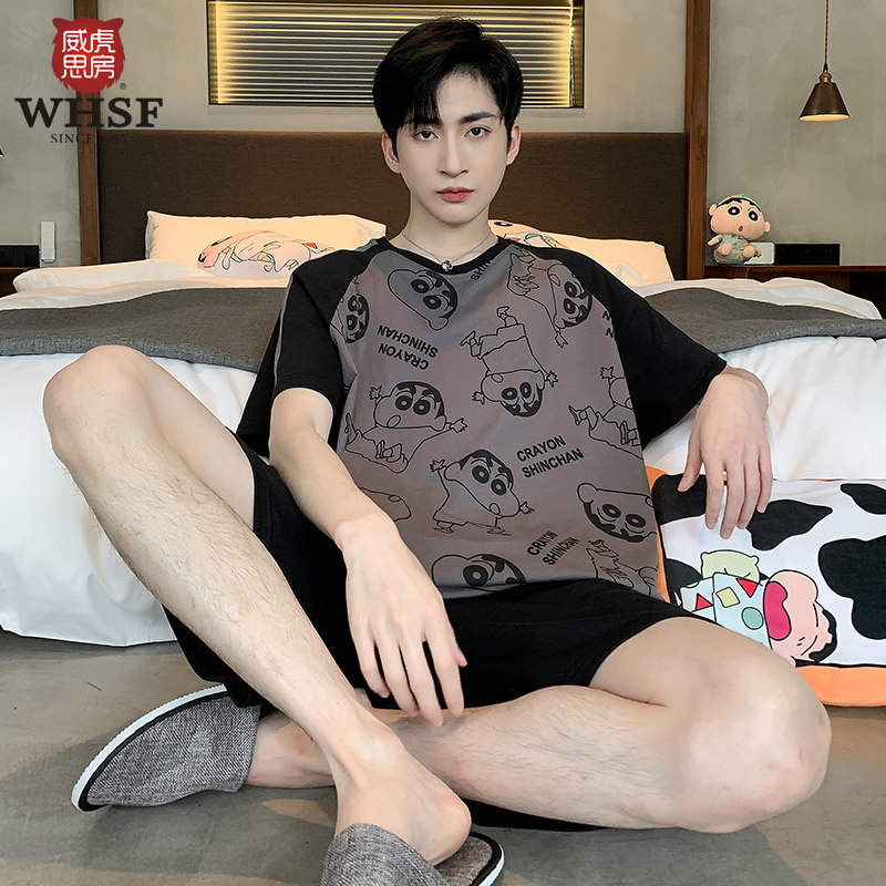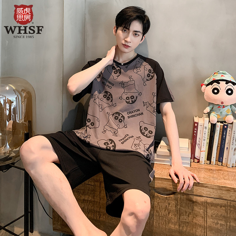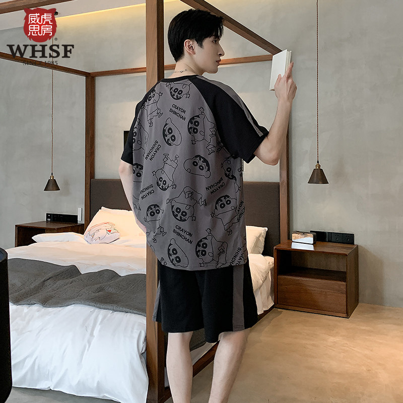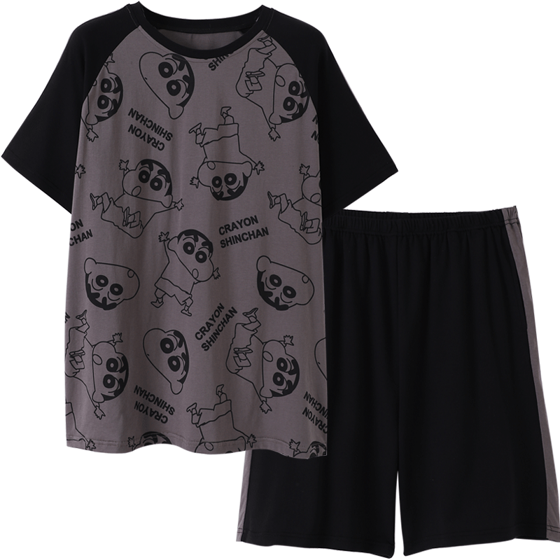 Crayon Xiaoxin joint pajamas men's summer middle school students round neck short sleeve pure cotton youth cotton home wear set