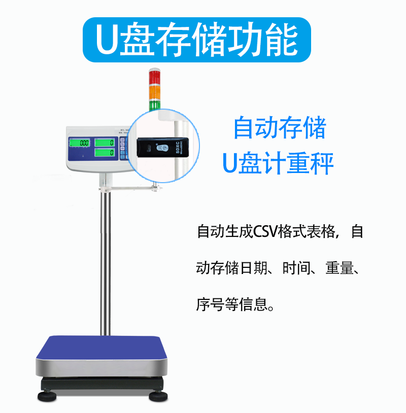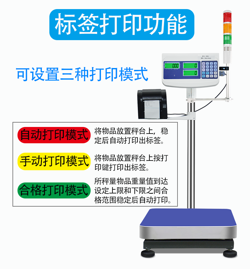 Bodybuilding upper and lower floor with tricolour lamp U disc storage recording data barcode scale with printing table scale weighing alarm scale