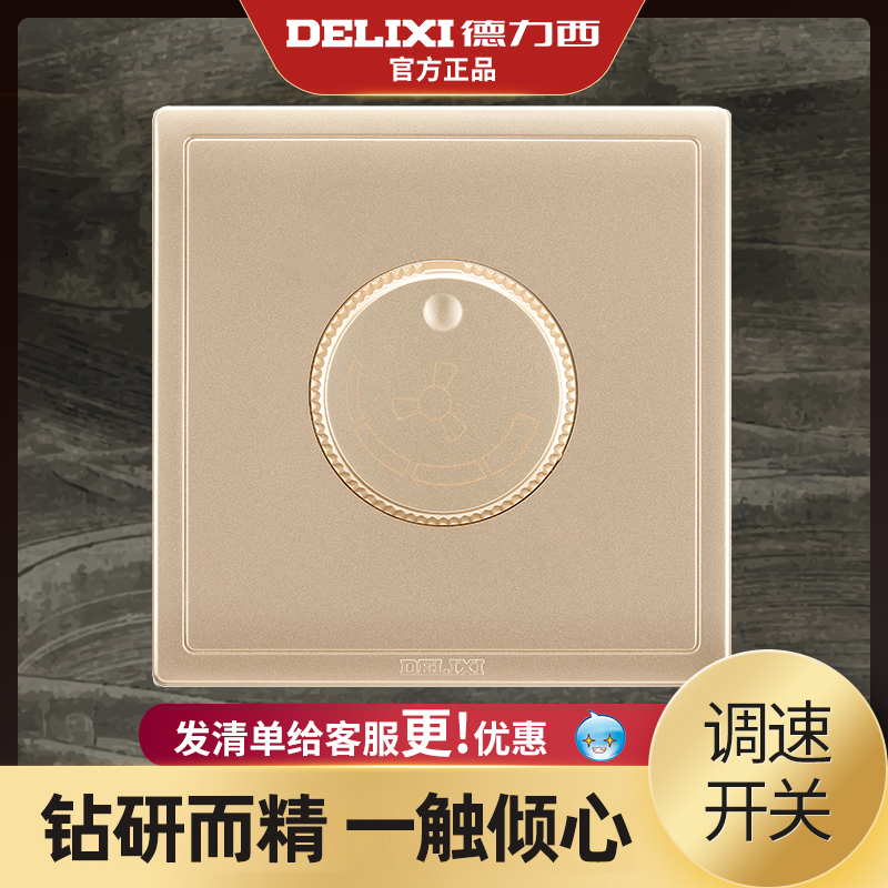 DeLixi Official Flagship Store 86 Type Throttle Switch Knob Panel Electric Fan Ceiling Fan Gold Throttle Switch