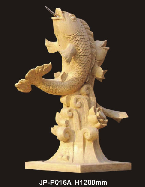 Sandstone jet pool Sculpture sandstone embossed round carved Roman column sandstone spray pool spray tap double fish spray water