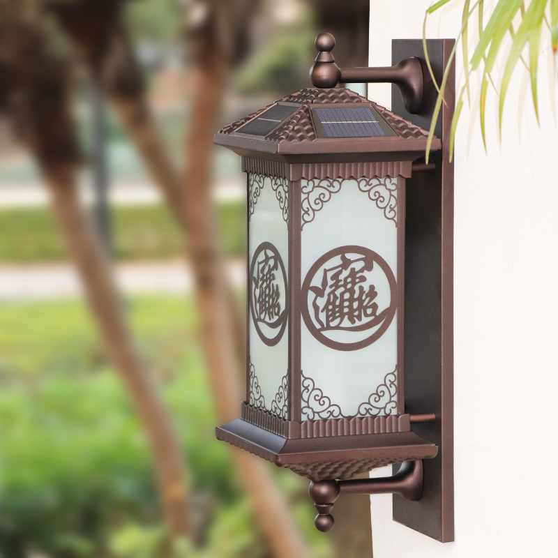 Shedeng solar wall light waterproof outdoor new Chinese garden aisle gate light outdoor villa rural courtyard