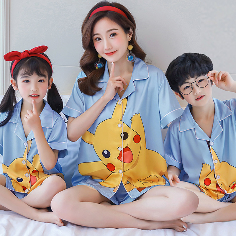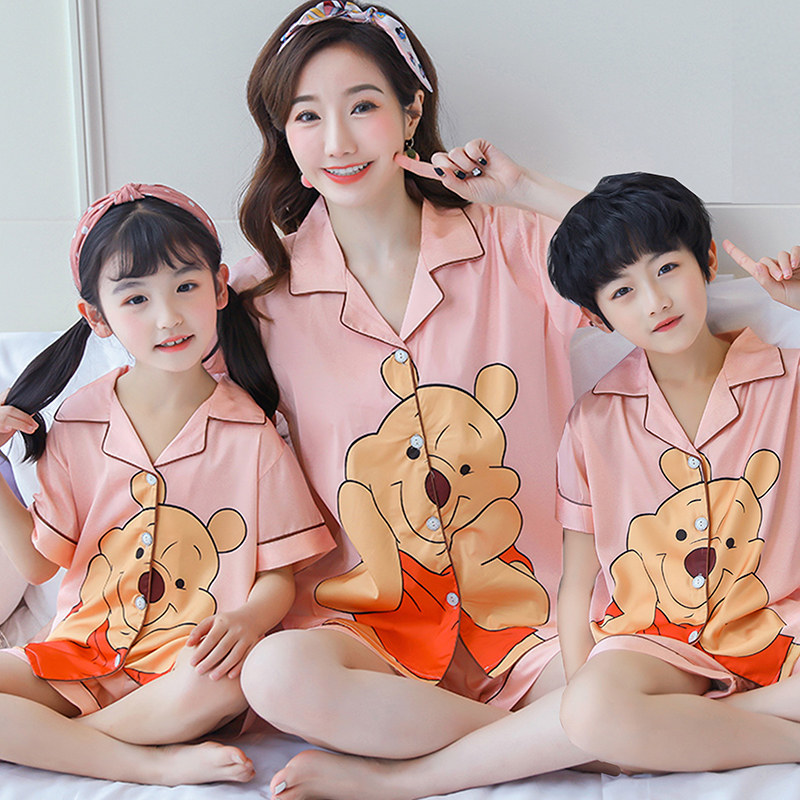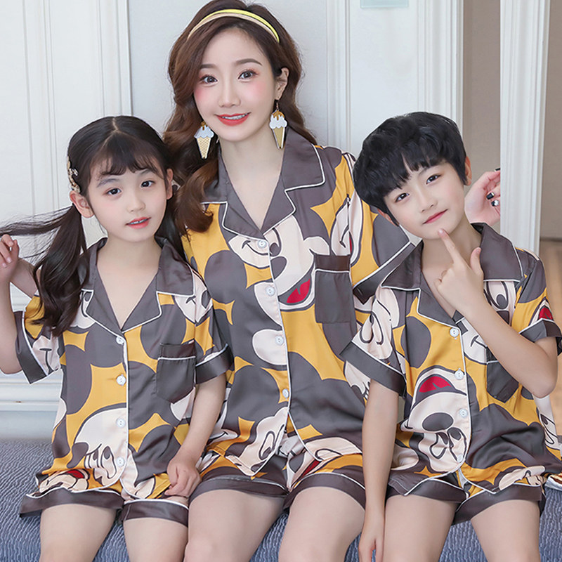 Children's pajamas summer short-sleeved ice silk boys and girls baby children's clothing thin section children parent-child summer home clothing