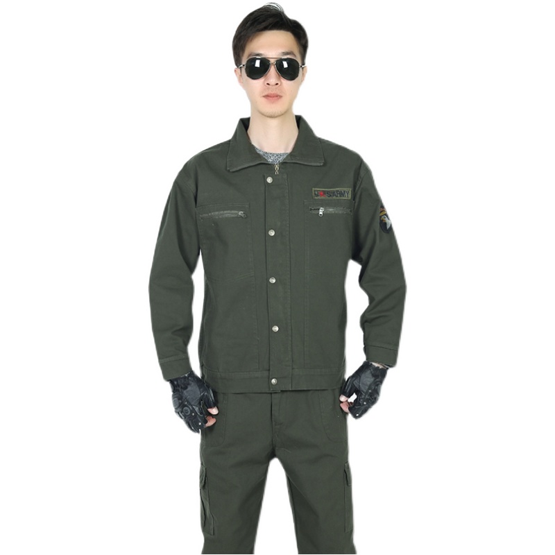 Wear-proof work suit electric welding and anti-scalding thickened pure cotton construction site resistant to dust and anti-fouling anti-fouling Force Green-Lawsuit suit